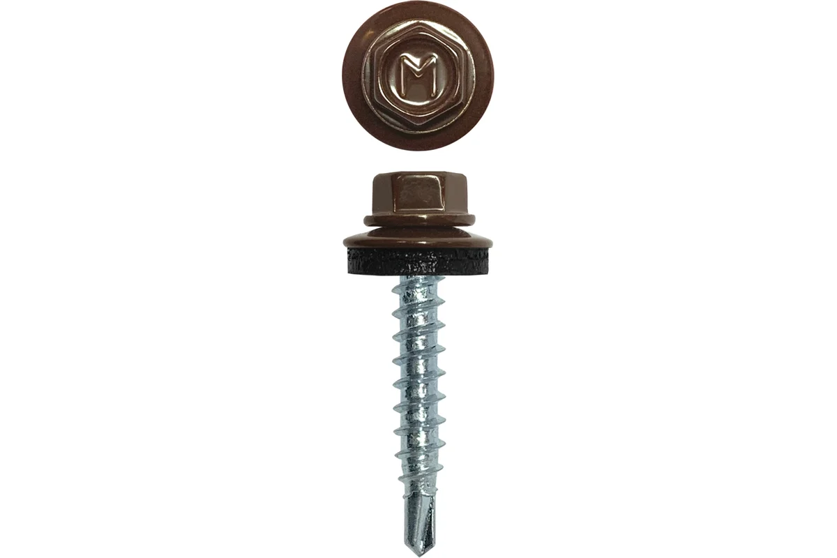 Кровельный саморез Daxmer 4,8х29 RAL 8017 250 шт. 00000305628 предназначен для монтажа кровли к деревянной обрешетке. Изделие обеспечивает плотное присоединение благодаря EPDM-уплотнителю. Саморез изготовлен из стали С1022, цинковое покрытие защищает от коррозии, шестигранная головка покрыта порошковой краской шоколадно-коричневого цвета.