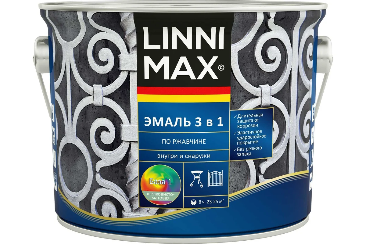 LINNIMAX Эмаль алкидно-уретановая по ржавчине 3 в 1 – инновационное решение для антикоррозионной защиты черных металлов и оцинкованных поверхностей. Объединяя в себе функции адгезионной грунтовки, антикоррозионной защиты и декоративной эмали, продукт идеально подходит для внутренних и наружных работ.