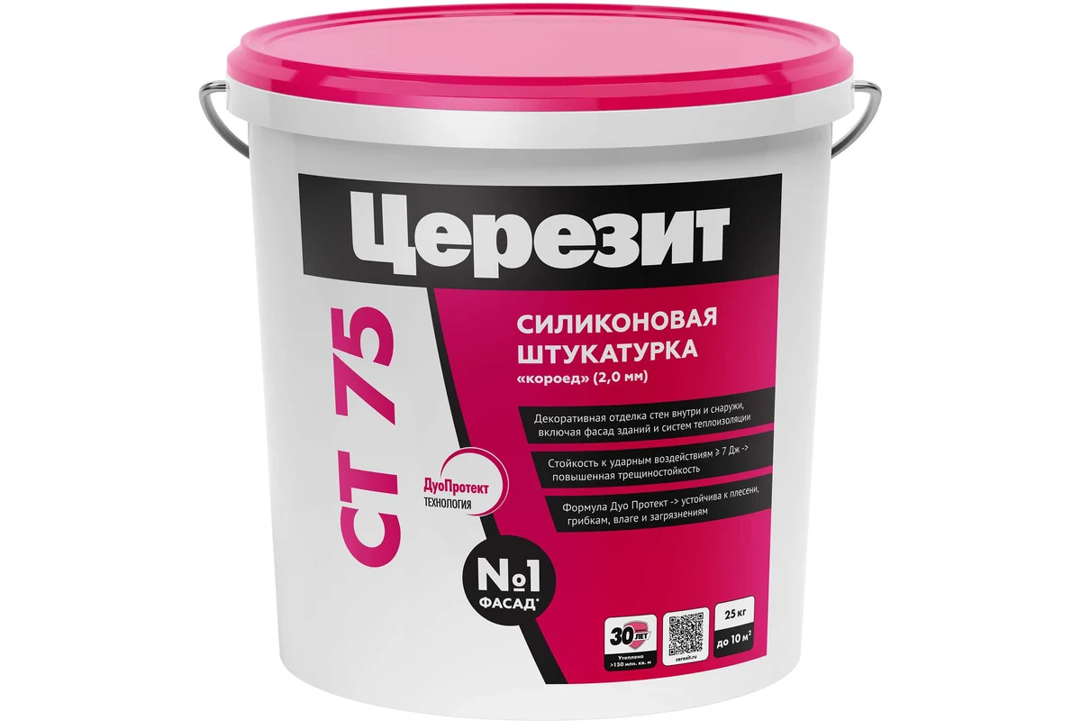 <comment>Приобрела в Киик маркете штукатурку ceresit ct 75 короед силиконовую для отделки фасада. Сначала сомневалась – в интернете много противоречивых отзывов. Но консультант в магазине всё подробно объяснил, показал сертификаты качества, рассказал о свойствах материала и особенностях применения. Штукатурка прекрасно подошла для работ на пенополистироле в системах утепления. Зернистая структура получилась равномерной, расход оказался даже меньше заявленного (повезло с основанием, наверное). Финишный слой выглядит дорого и красиво. Соседка уже спрашивала, где такую красоту купила. Спасибо Киик маркету за качественные товары и профессиональный подход!</comment>